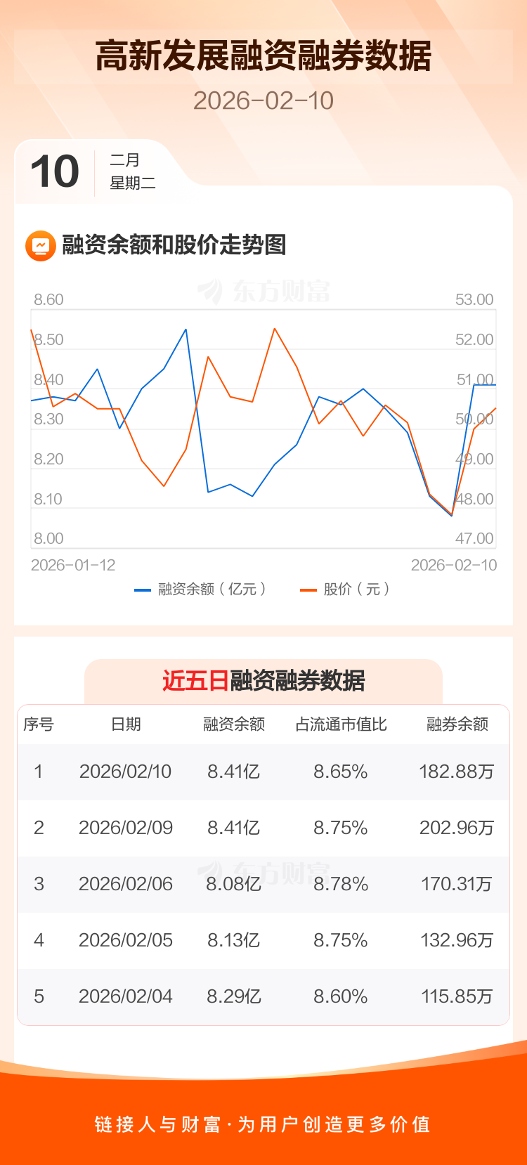 交易所最新数据显示,高新发展于2026年2月10日获融资买入3043.15万元,融资偿还3058.03万元,当日融资净偿还14.88万元。目前,该股融资余额8.41亿,占流通市值比例为8.65%。