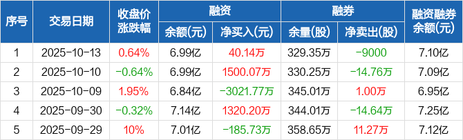 钒钛股份:融资净买入40.14万元,融资余额6.99亿元(10-13)