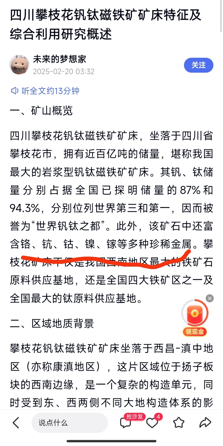 $钒钛股份(SZ000629)$ 重磅!钒钛尾矿伴生大量稀有金属!潜在稀土概念巨头!