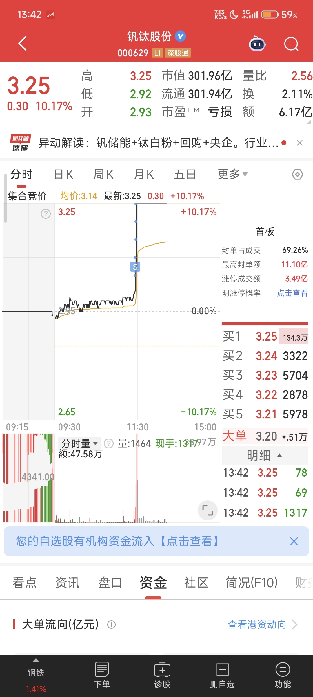 $钒钛股份(SZ000629)$ 亏大了,自动减仓了1/5,幸亏仓重