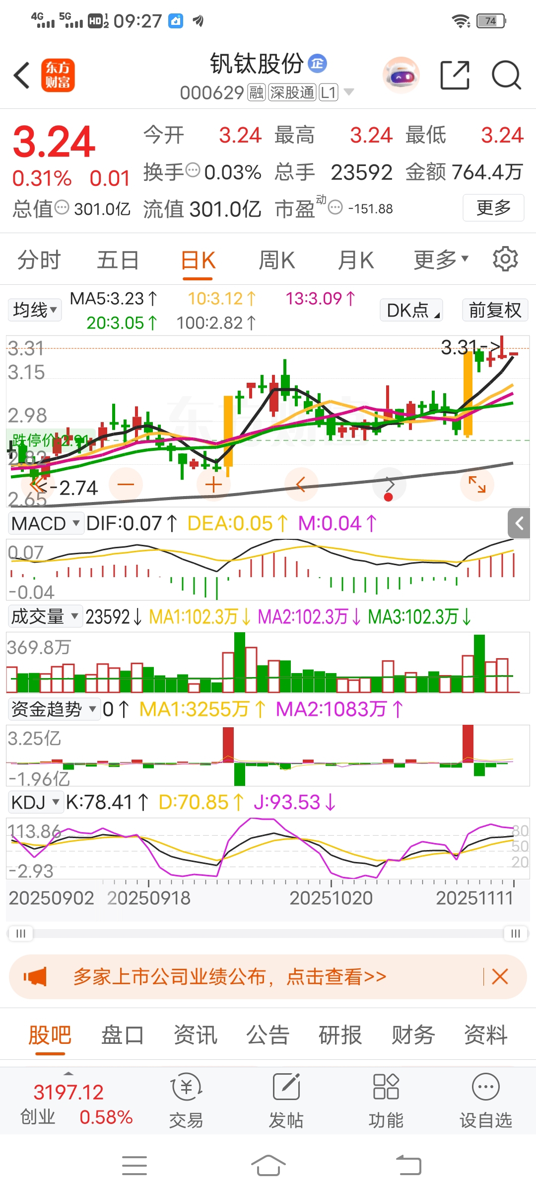 $钒钛股份(SZ000629)$ 跟9月29号。涨停后的走势一模一样,接下来可能又要跌20天
