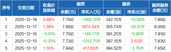 钒钛股份:融资净偿还1362.1万元,融资余额7.76亿元(12-18)