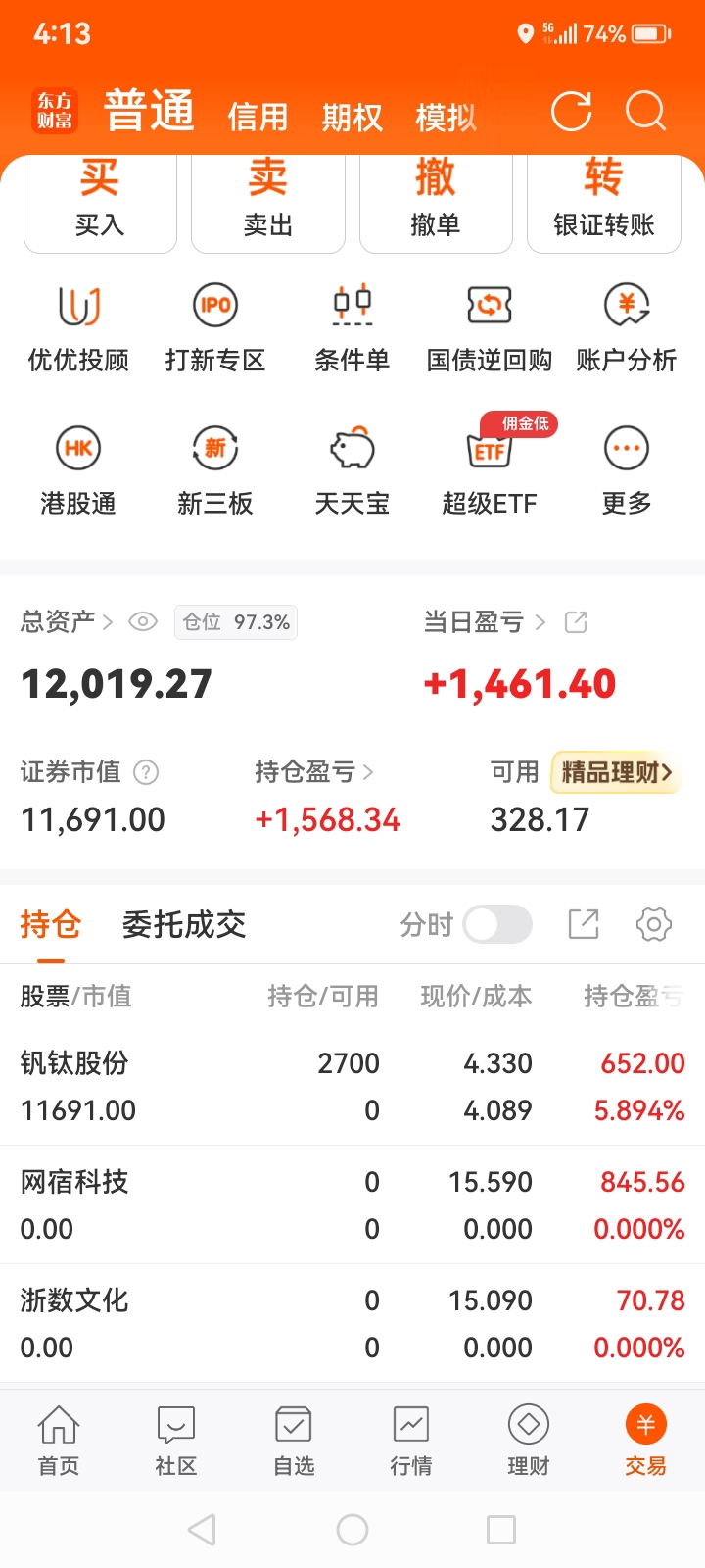 $钒钛股份(SZ000629)$ 1.18万实盘第13天