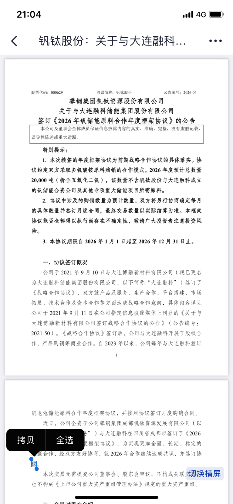$钒钛股份(SZ000629)$ 这个算利好吗?