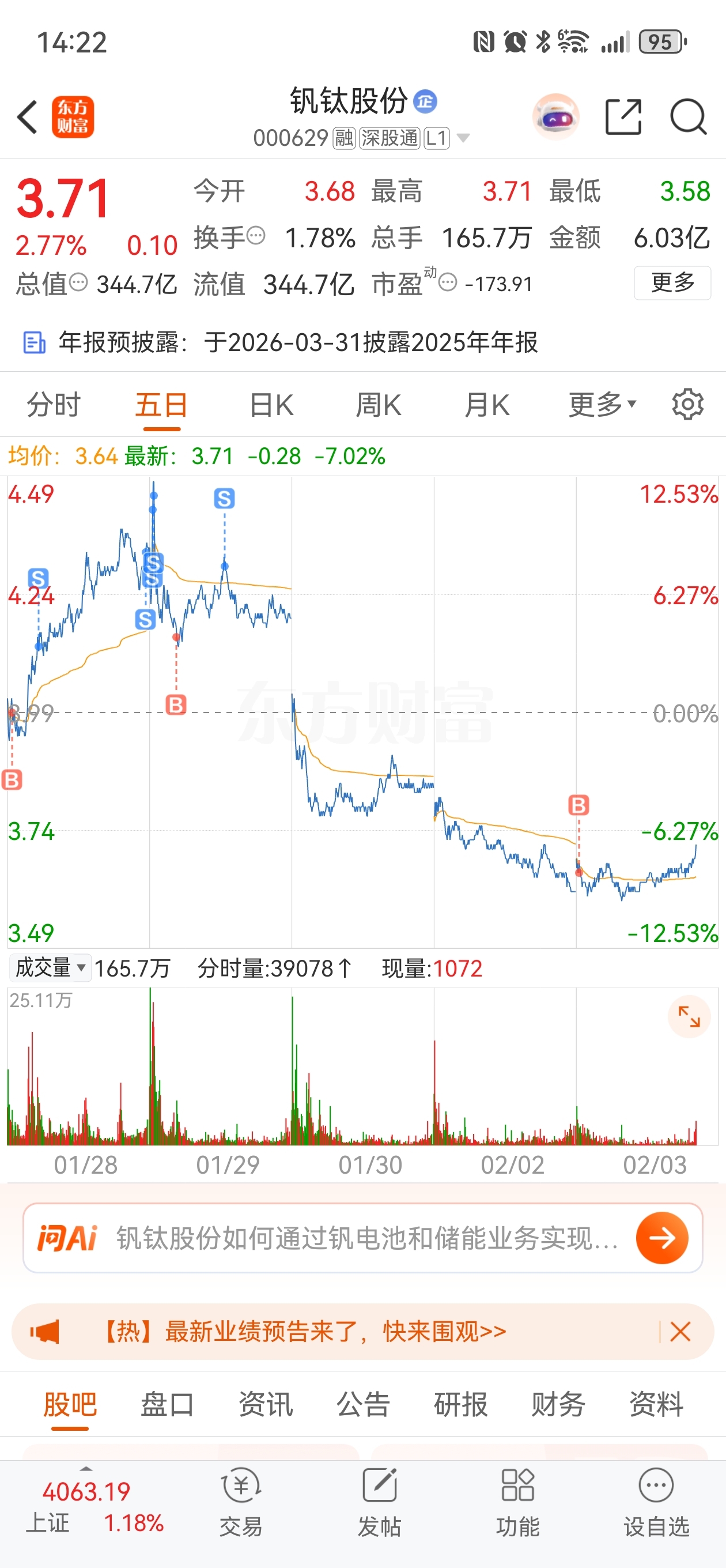 $钒钛股份(SZ000629)$ 回调差不多了估计,知行合一干