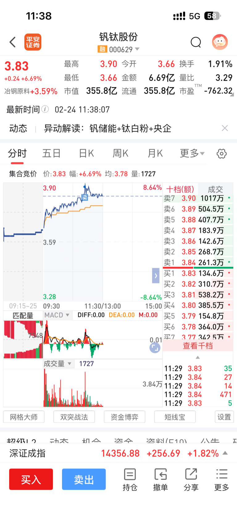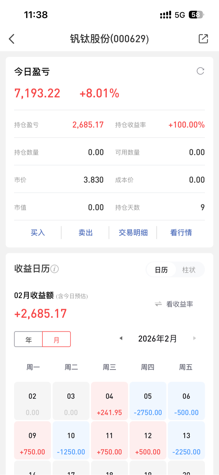 $钒钛股份(SZ000629)$ 3.77买进,3.88清仓,说解套走就说到做到,股性不适合我