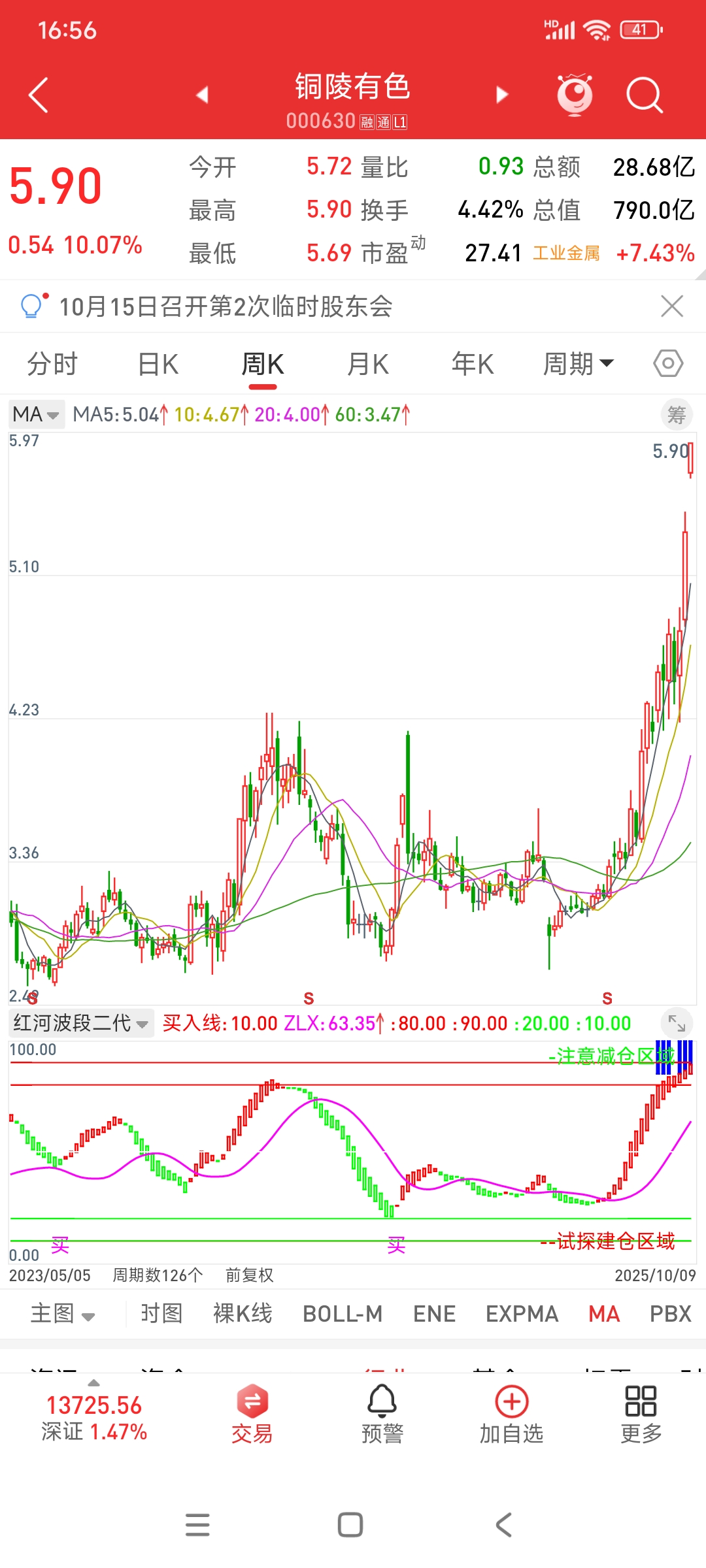 $铜陵有色(SZ000630)$ 资源股就是周线级别的上涨行情,毕竟红柱还是延续的,这里中线党还可以拿一拿。