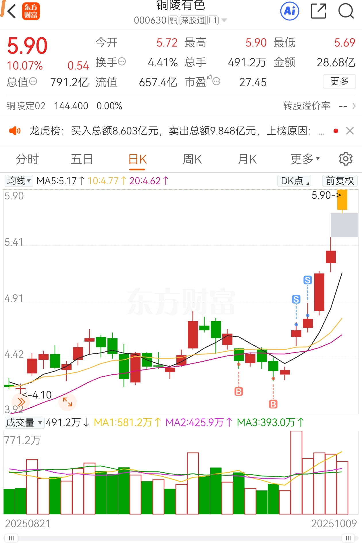 $铜陵有色(SZ000630)$ 谁心里苦我不说
