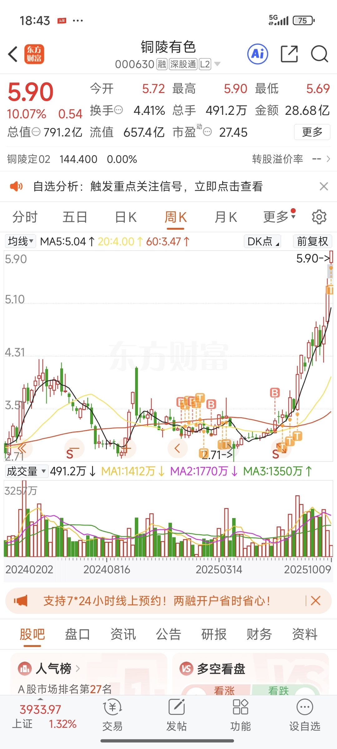 $铜陵有色(SZ000630)$ 3块的本拿了9个月了,一共5万股,今天板上卖了。感觉卖亏了,又接回来5000股。现在好迷茫,明天怎么走啊