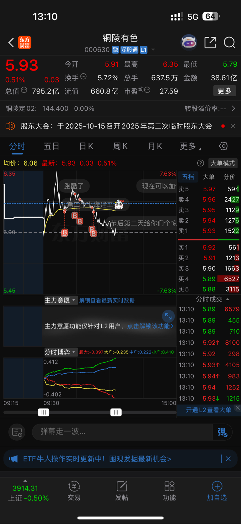 $铜陵有色(SZ000630)$ 上午进的66.6w,下午能不能拉个涨停给我看看