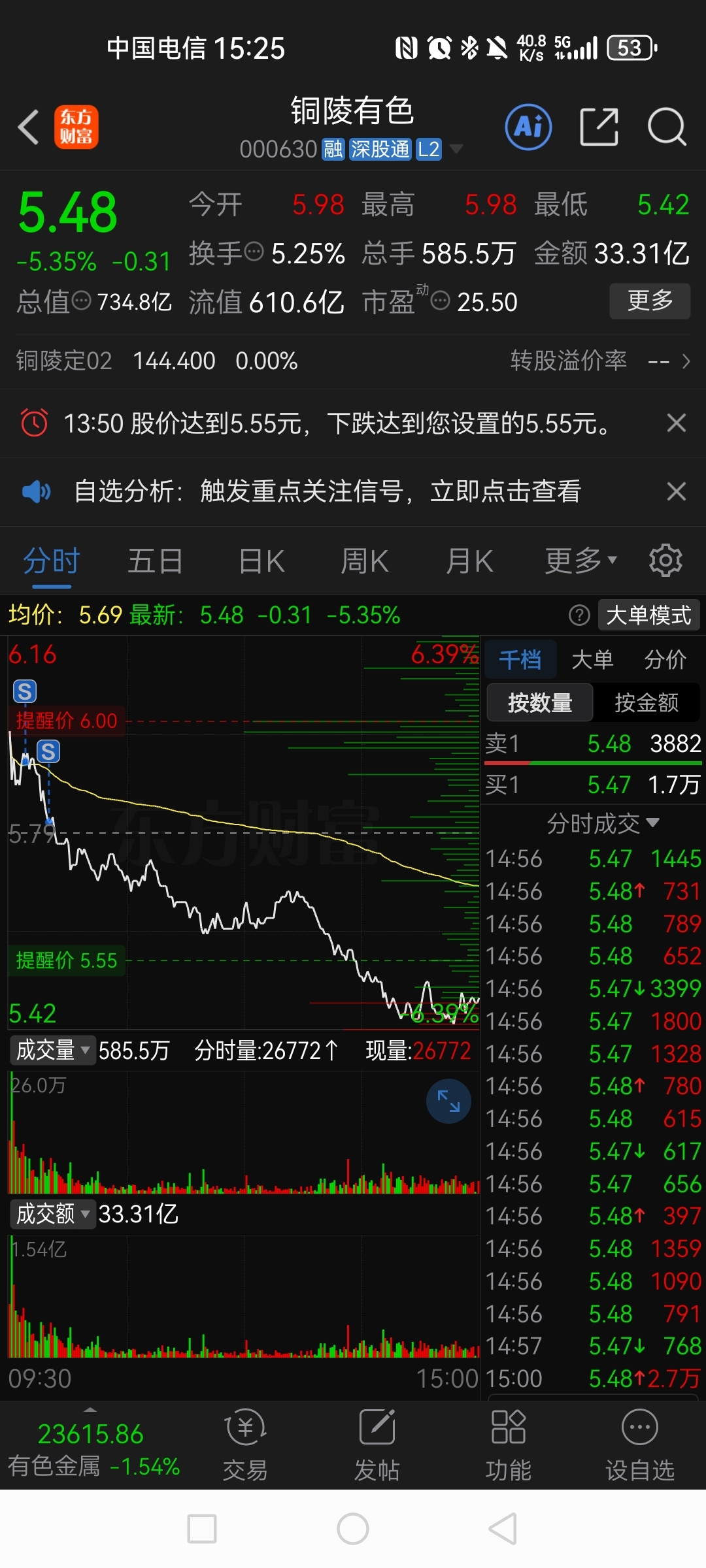 $铜陵有色(SZ000630)$ 受不了,亏了几万跑了6.2的本!