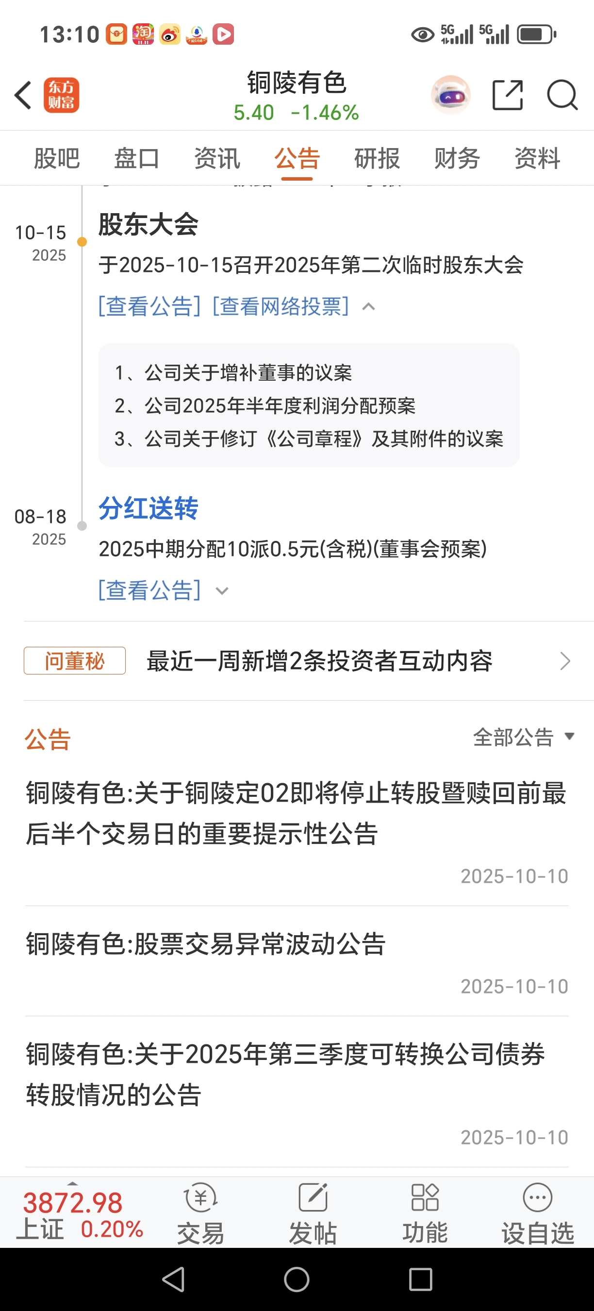 $铜陵有色(SZ000630)$ 今天开股东大会,确定2025上半年分红。