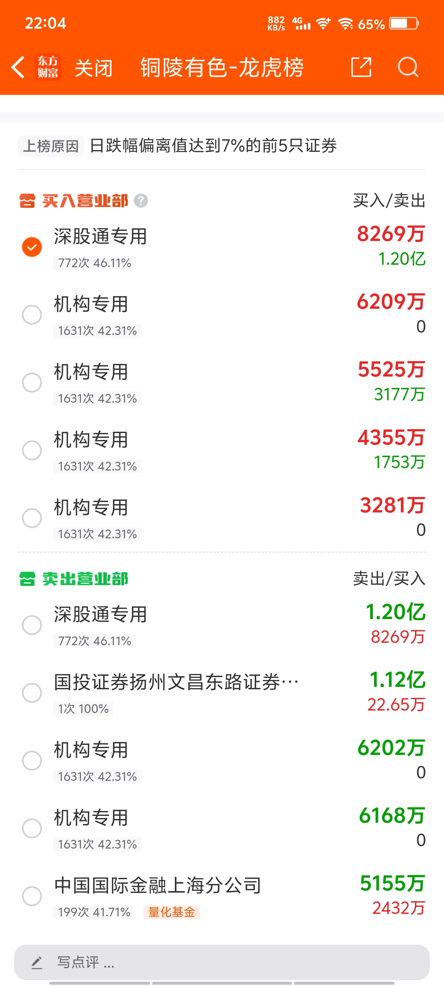 $铜陵有色(SZ000630)$ 龙虎榜不错,明天敢低开我就敢加仓抄底!一个点赞一个涨停