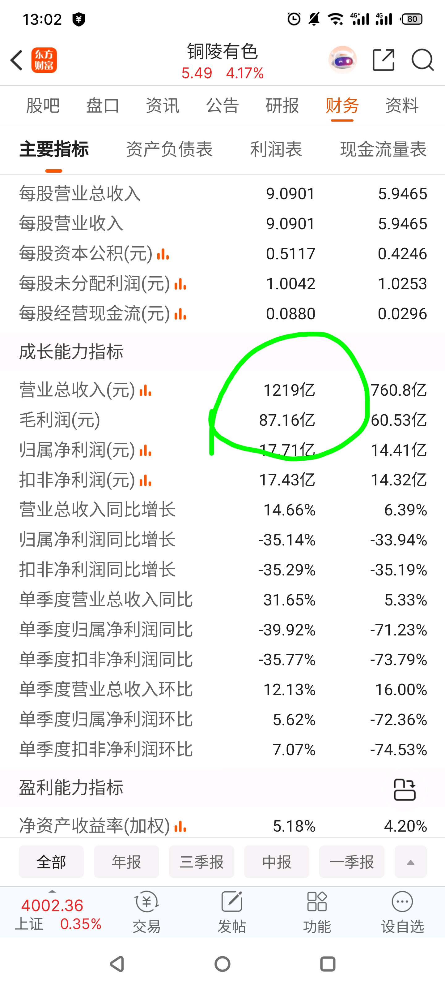,可以说铜陵有色是非常优异的股票吗?收入按千亿计算,不就是同比下降一点吗?技术