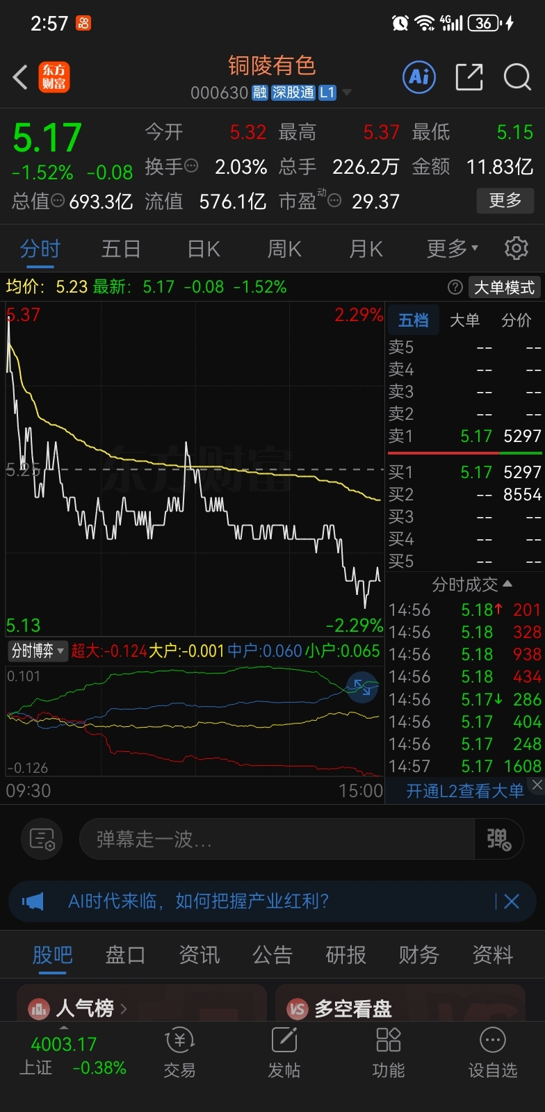 $铜陵有色(SZ000630)$ 啊,每天高开低走,早知道这样早盘就卖了你