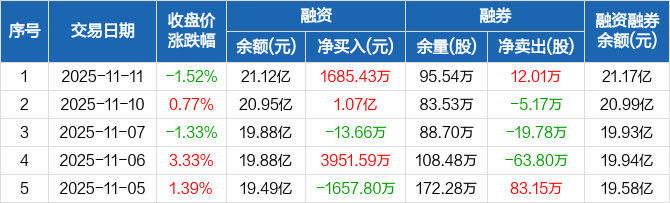 铜陵有色:融资净买入1685.43万元,融资余额21.12亿元(11-11)