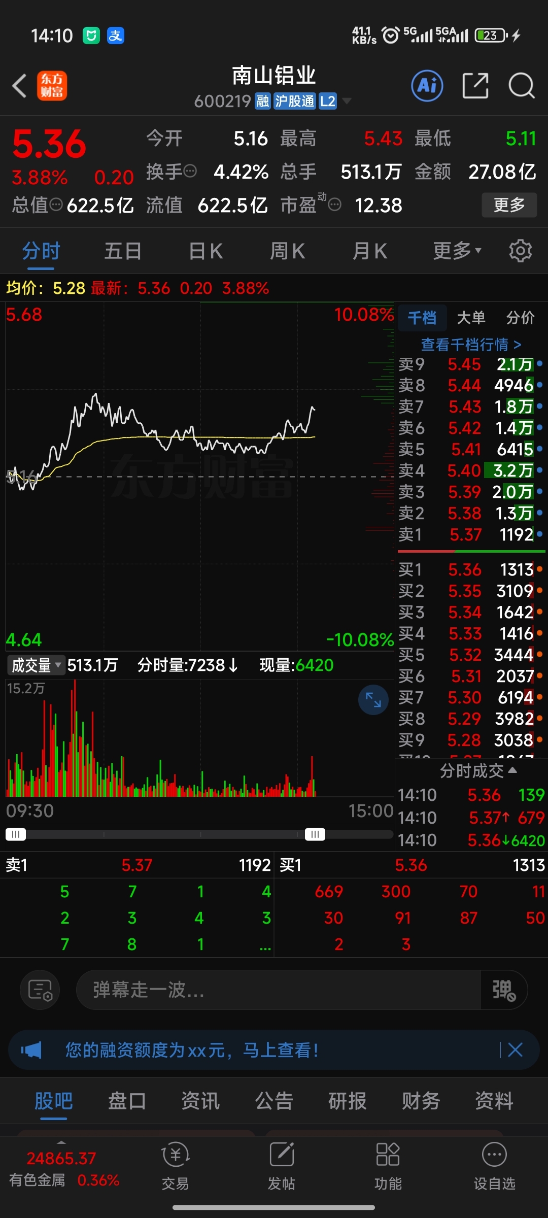 $铜陵有色(SZ000630)$ 童林用色和南山铝业大PK。之前骨架差不多。还是铜陵有色高一块。最高的时候差一块。现在价格居然差不多,看谁厉害。