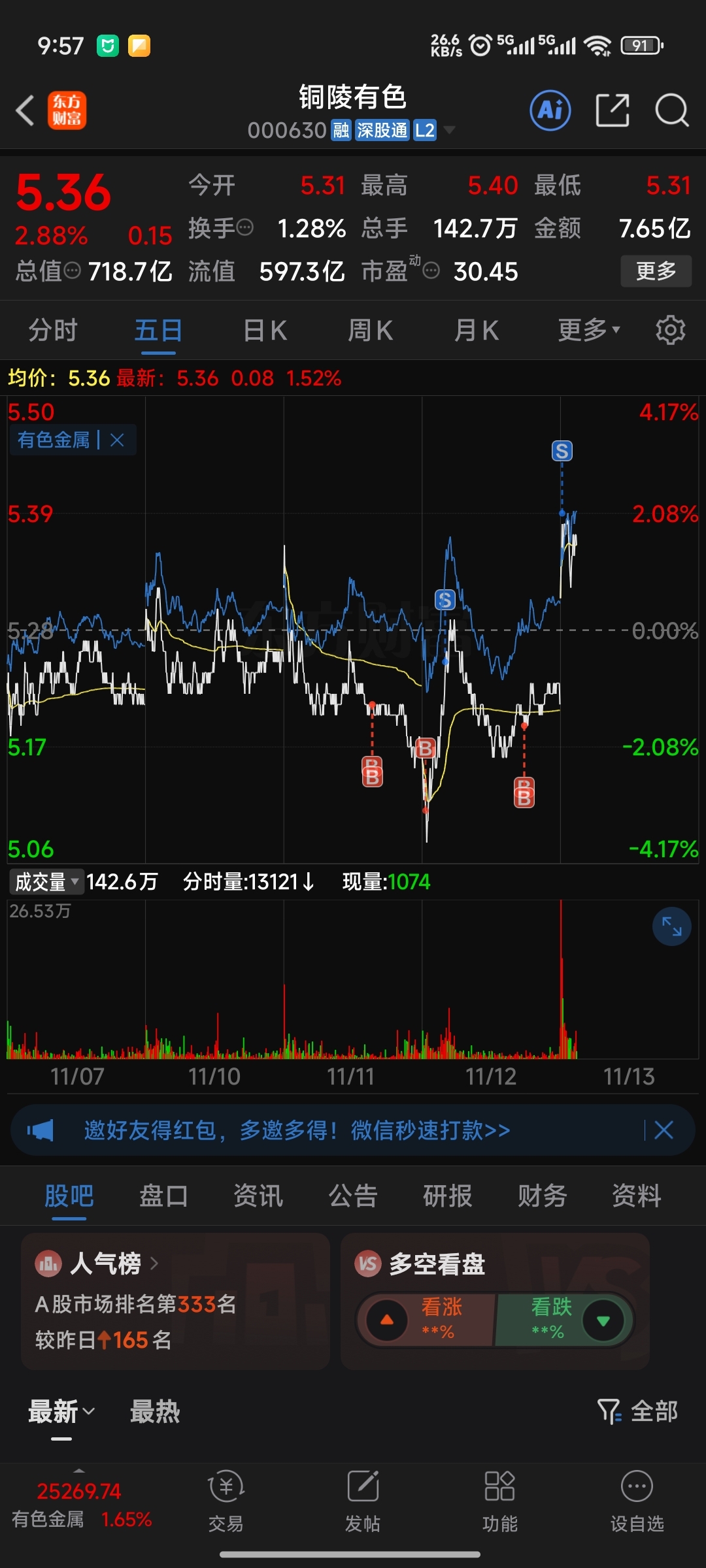$铜陵有色(SZ000630)$ 做了个t,谢谢主力拉台