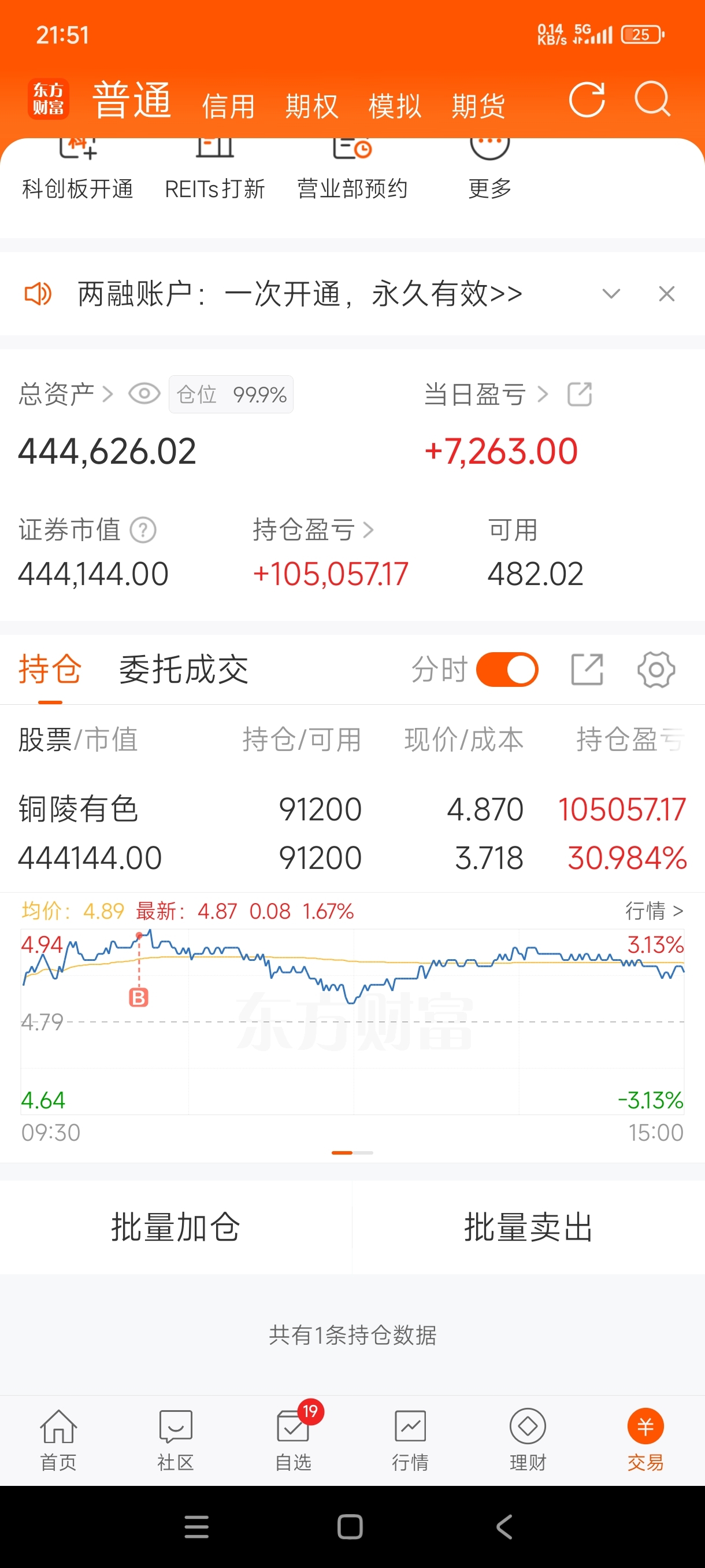 $铜陵有色(SZ000630)$ 起晚了今天最高点分红买入1000股
