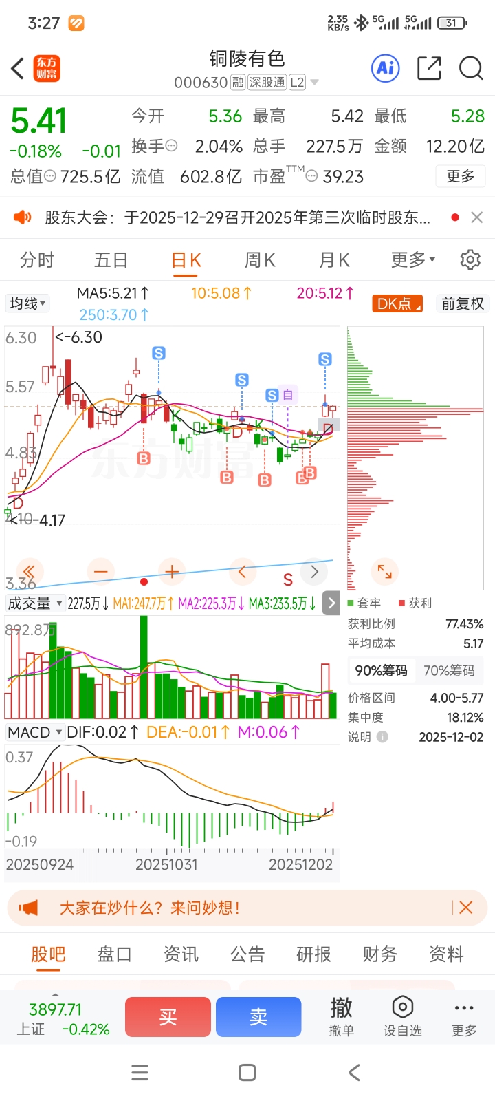 $铜陵有色(SZ000630)$ 打一枪就走,等一天都不行