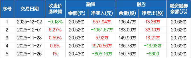 铜陵有色:融资净买入557.94万元,融资余额20.58亿元(12-02)