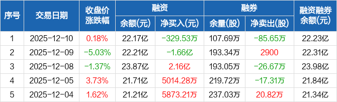 铜陵有色:融资净偿还329.53万元,融资余额22.17亿元(12-10)