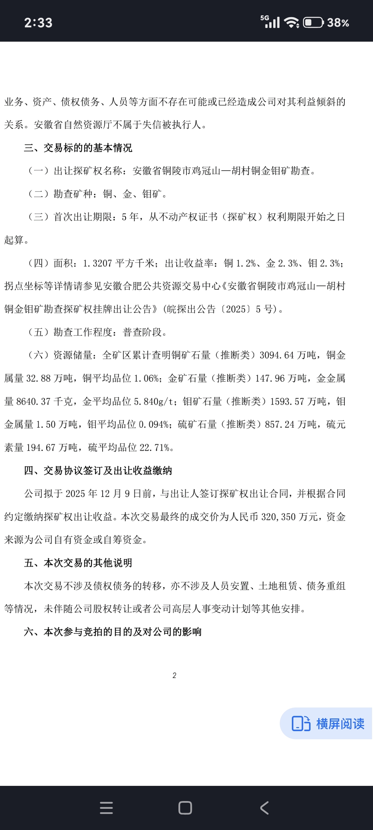 $铜陵有色(SZ000630)$ 说好的12.9日前签订探矿权转让协议,为什么不公告?