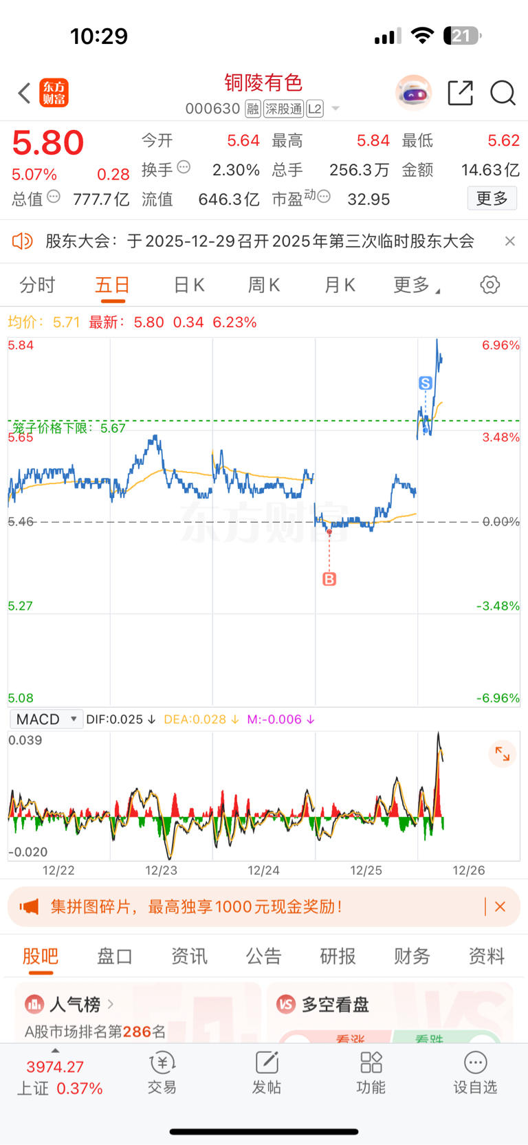 $铜陵有色(SZ000630)$ 早上卖飞了好难受啊