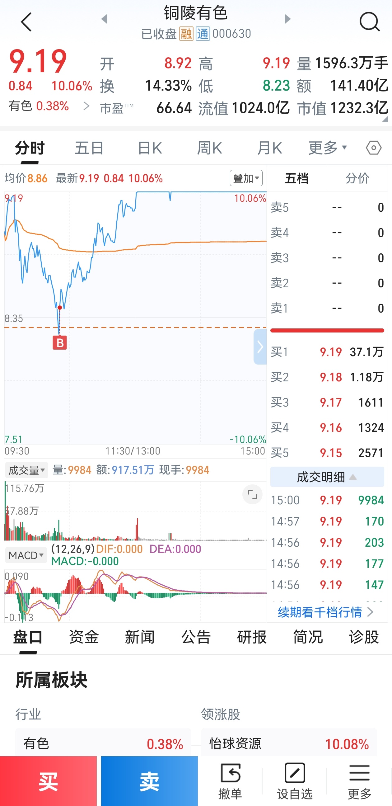 $铜陵有色(SZ000630)$ 明天基本一字跌停,能跑开盘有机会就跑吧