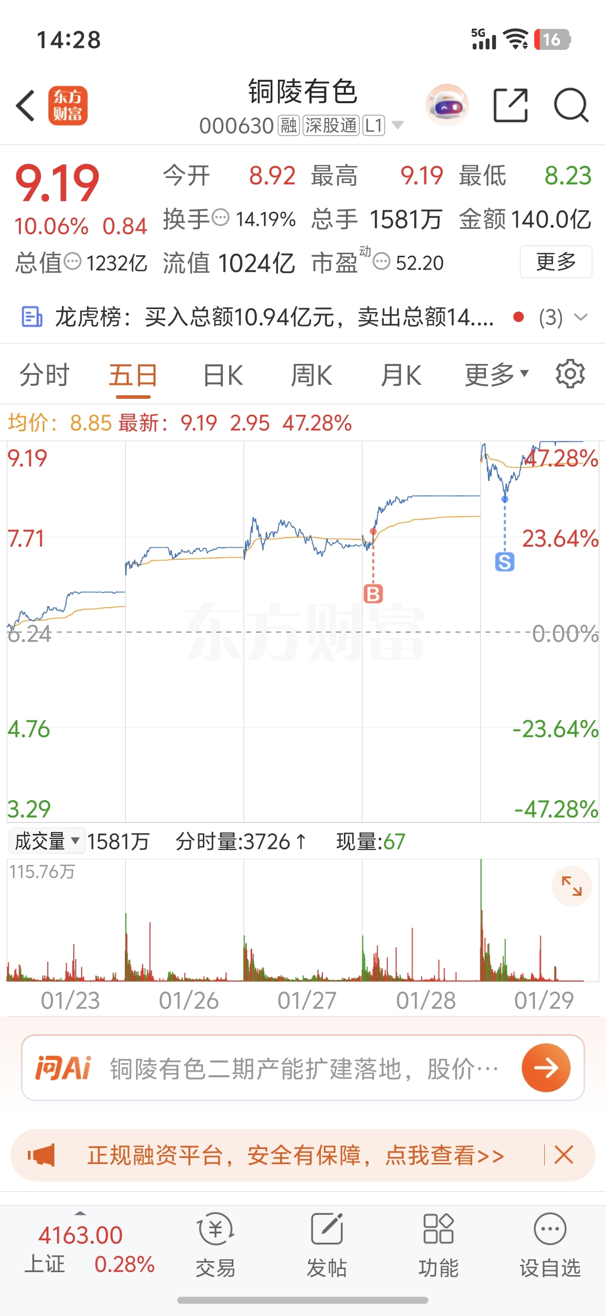 $铜陵有色(SZ000630)$ 骗的我好惨 一个点不赚是我的底线,刚好到我底线了,不该我赚这个钱