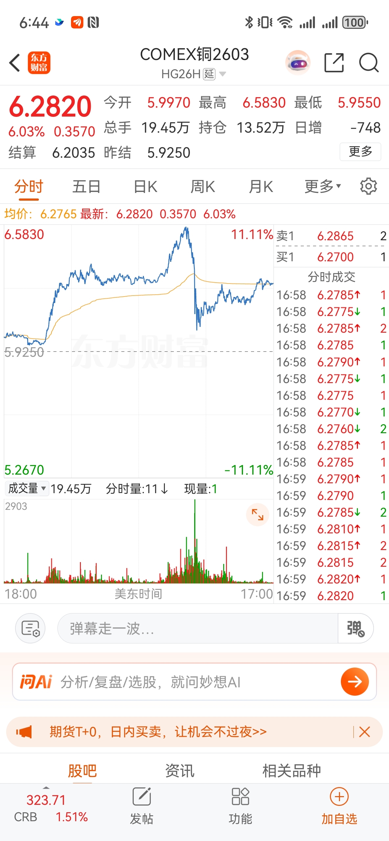 铜大涨6个点