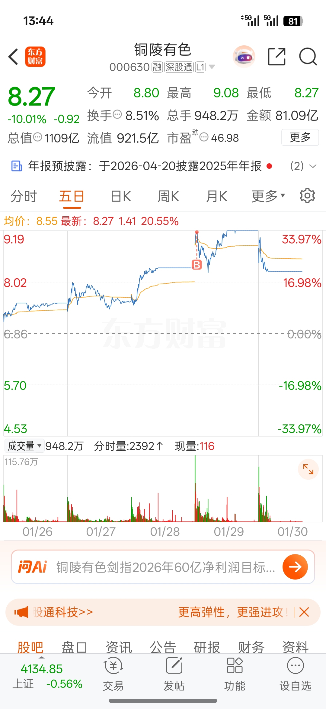 $铜陵有色(SZ000630)$ 冬天山顶好凉快啊