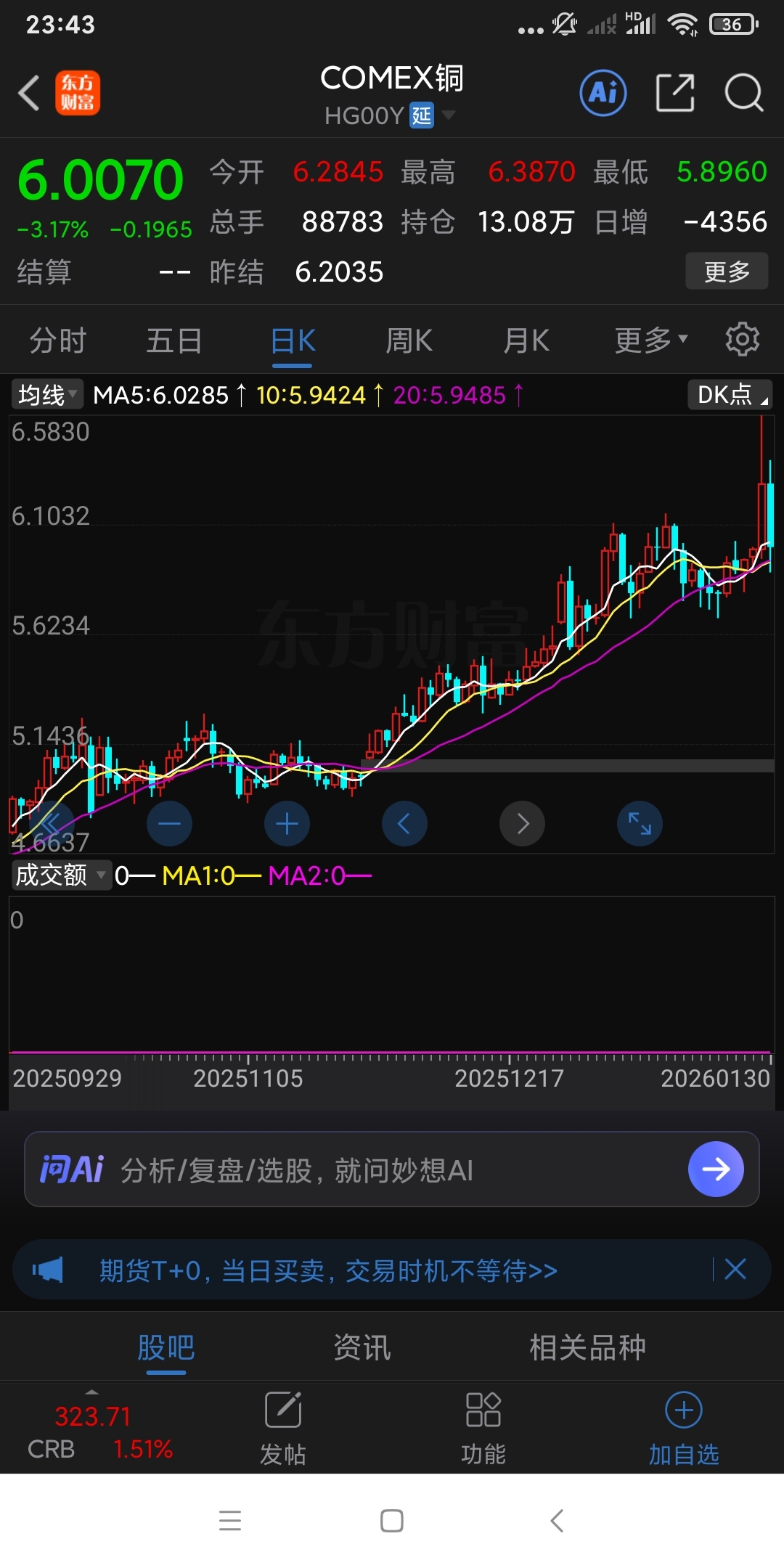铜期货大跌!铜陵有色周一又是一字跌停板开盘!没戏!!有色金属下周尽量避开!别在过