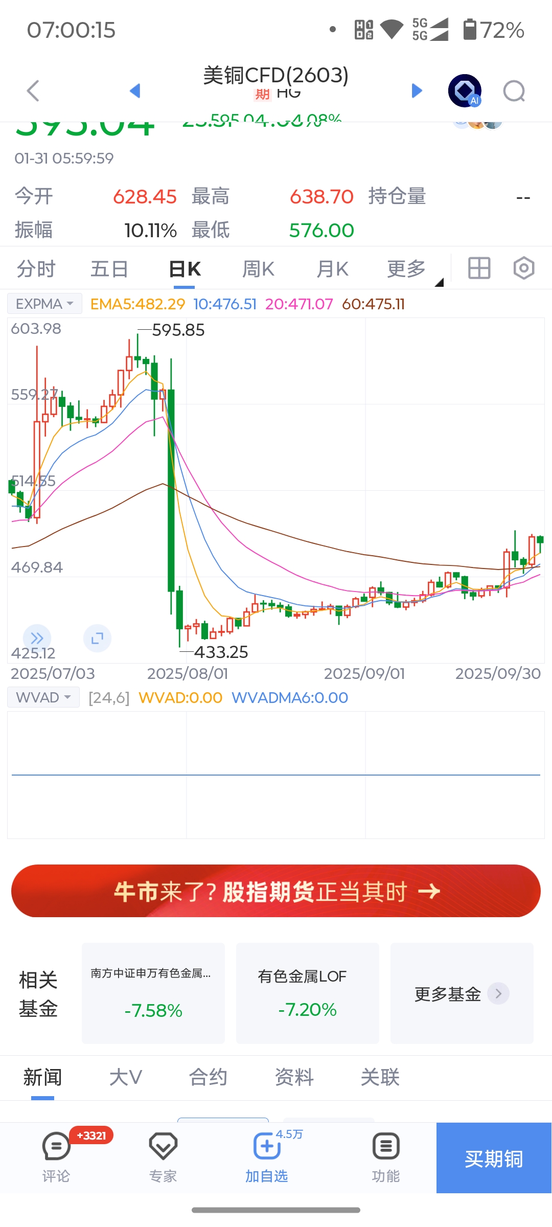 $铜陵有色(SZ000630)$ 2025年8月美铜期货有一次暴跌,花了五个月重新涨上来了。昨晚的黄金暴跌走势和那次美铜期货如出一辙,就不知道未来几个月会不会复制上次美铜期货的走势图