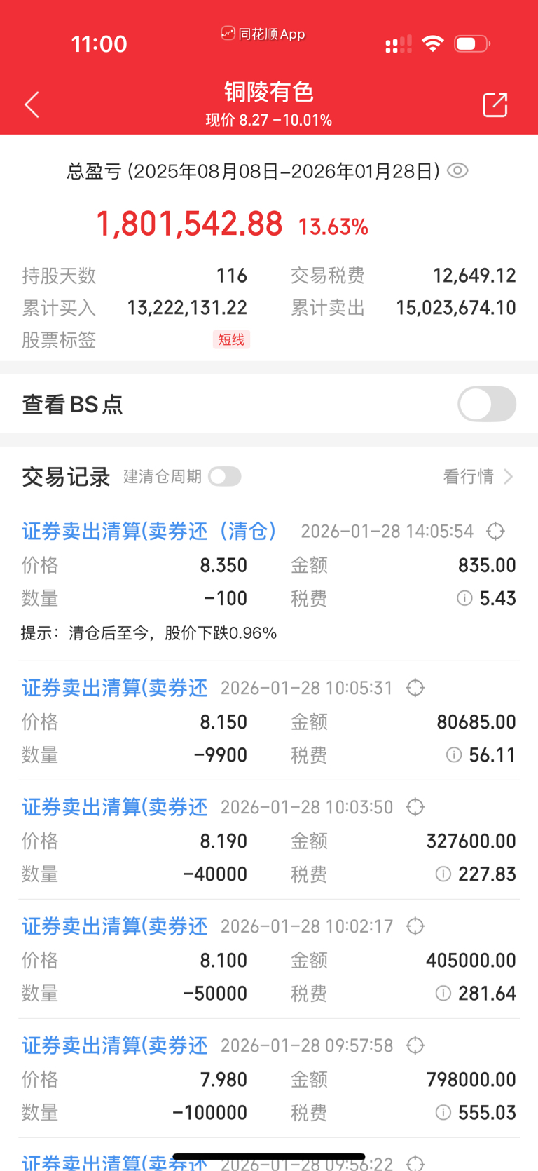 $铜陵有色(SZ000630)$ 精准走位 清仓了