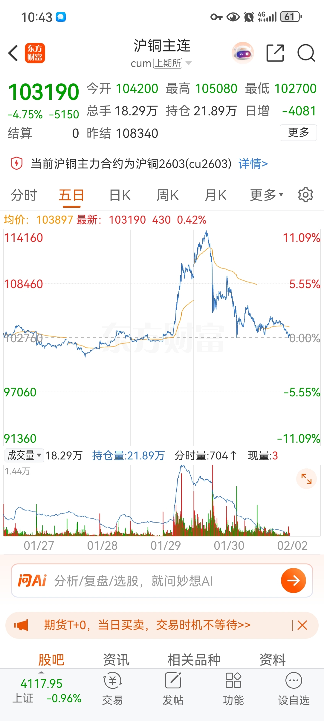 $铜陵有色(SZ000630)$ 泸铜不涨不跌,平稳