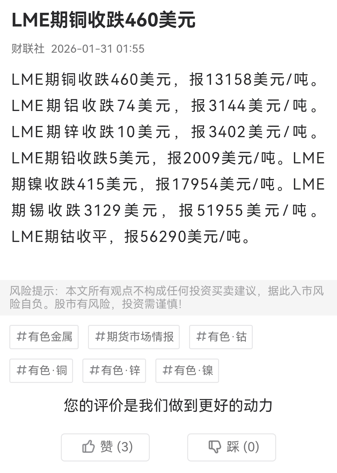 $铜陵有色(SZ000630)$ 咱说,这白银有色8天8板跌停说得过去!这铜陵有色刚涨人家的一半数,也跟着跌停…真是大无语!!!黄金股涨的时候它也不涨啥,白银涨它也不涨啥,合着这波上涨是跟铜价吗???咱再说,那个白银有色的净资产,每股收益都不如铜陵有色,人家就能哐哐往上涨!咱这儿可下开次荤,还没等啪叽出味儿呢!直接就开拉了,真是狗肚子装不了二两香油…再赶上这国际期货大跌……大无语……大无语呀…