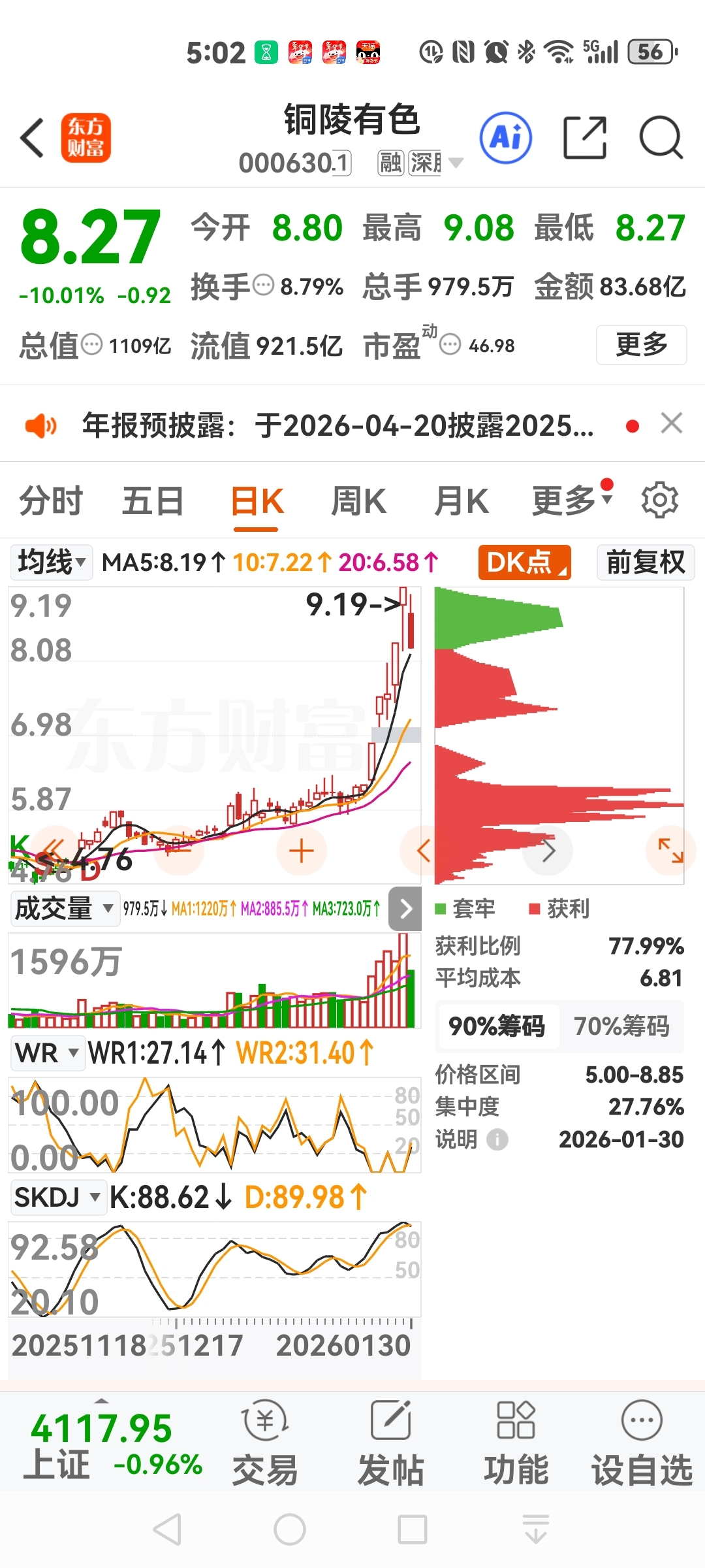 显然,铜陵有色刚刚进入上涨时间,说铜陵有色涨过头了?理由在哪里?