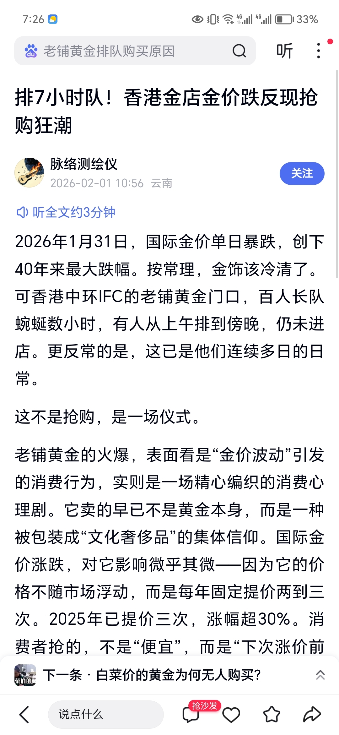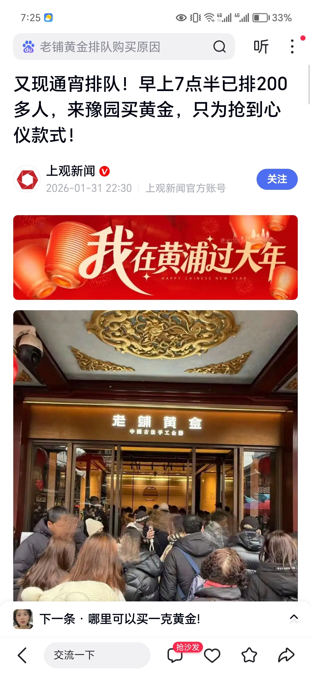 这两天金铺排队的人人山人海,居然都在抢。