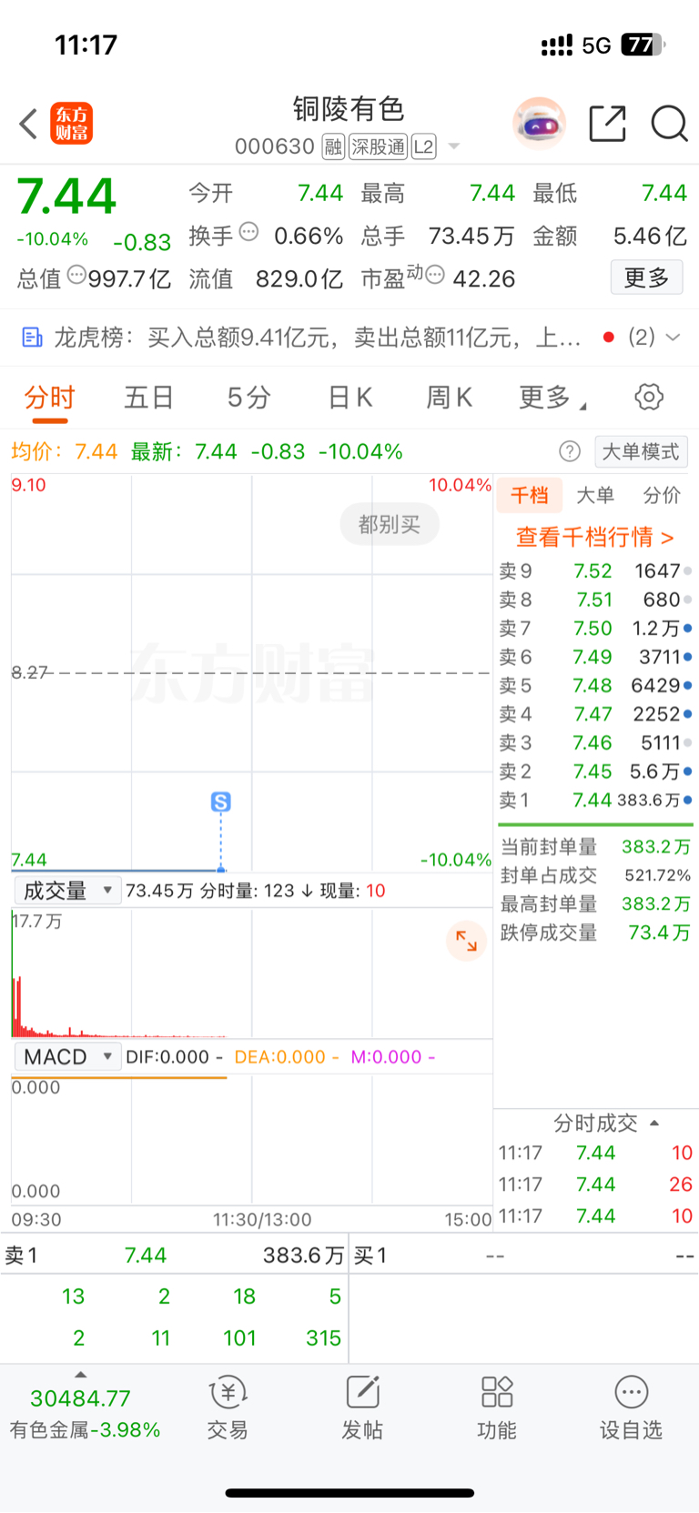 $铜陵有色(SZ000630)$ 跳车了