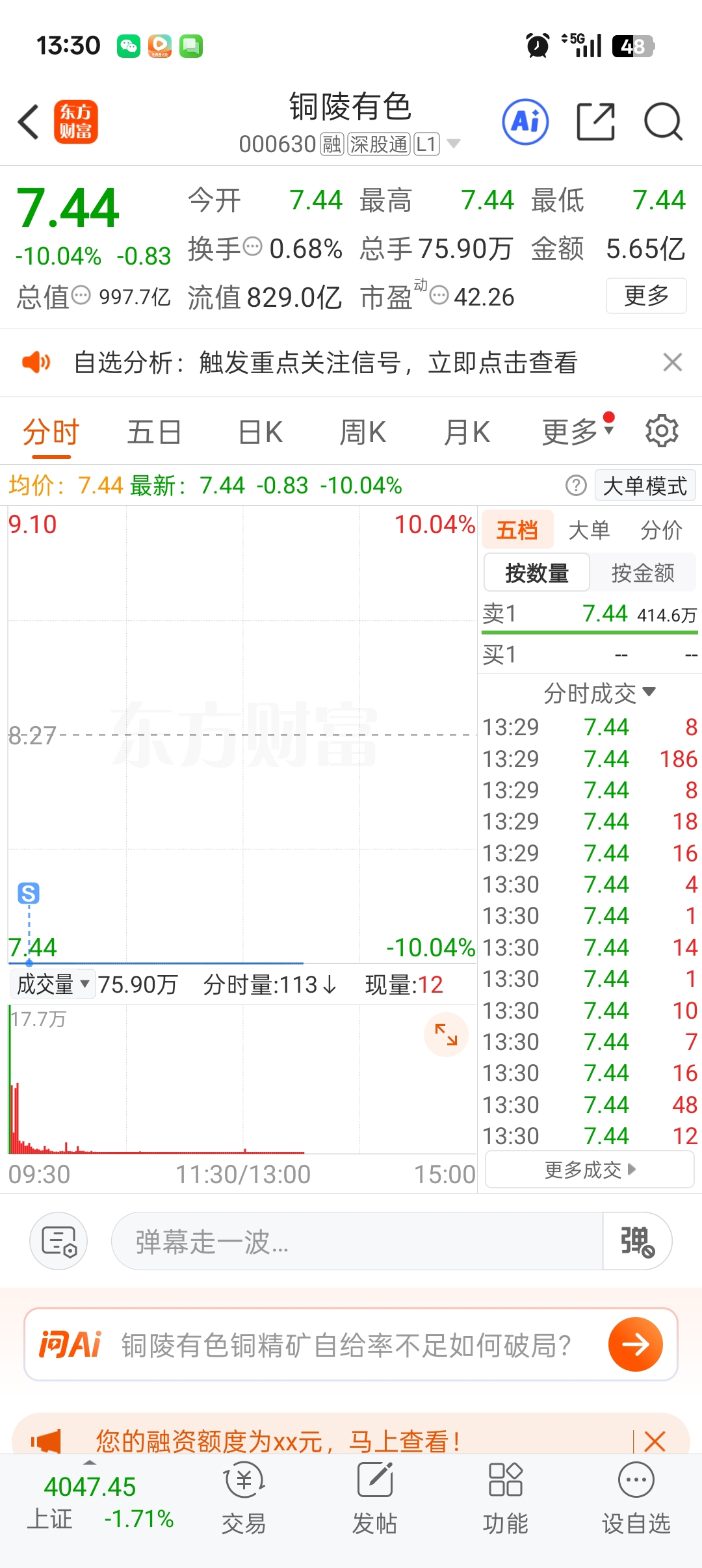 $铜陵有色(SZ000630)$ 认了,割肉离场