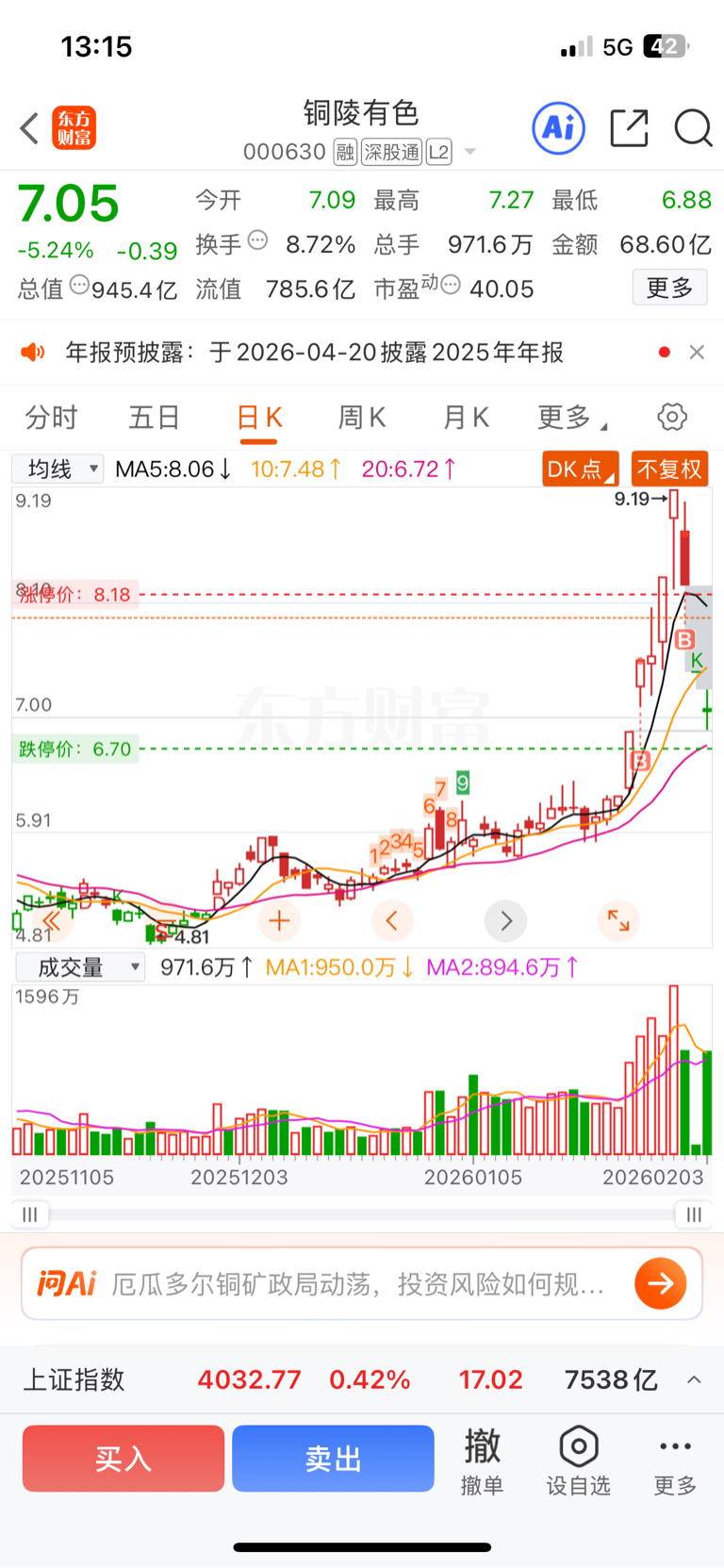 $铜陵有色(SZ000630)$ 怪我太贪了