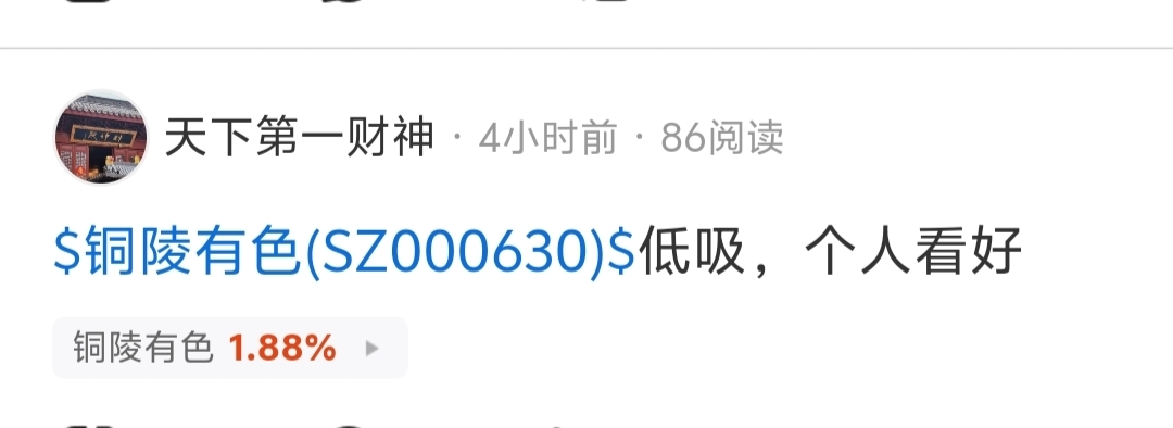 $铜陵有色(SZ000630)$ 跟上的可以吃肉了,