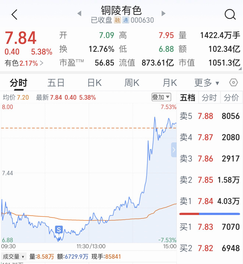 $铜陵有色(SZ000630)$ 拿了很多天,卖完就涨