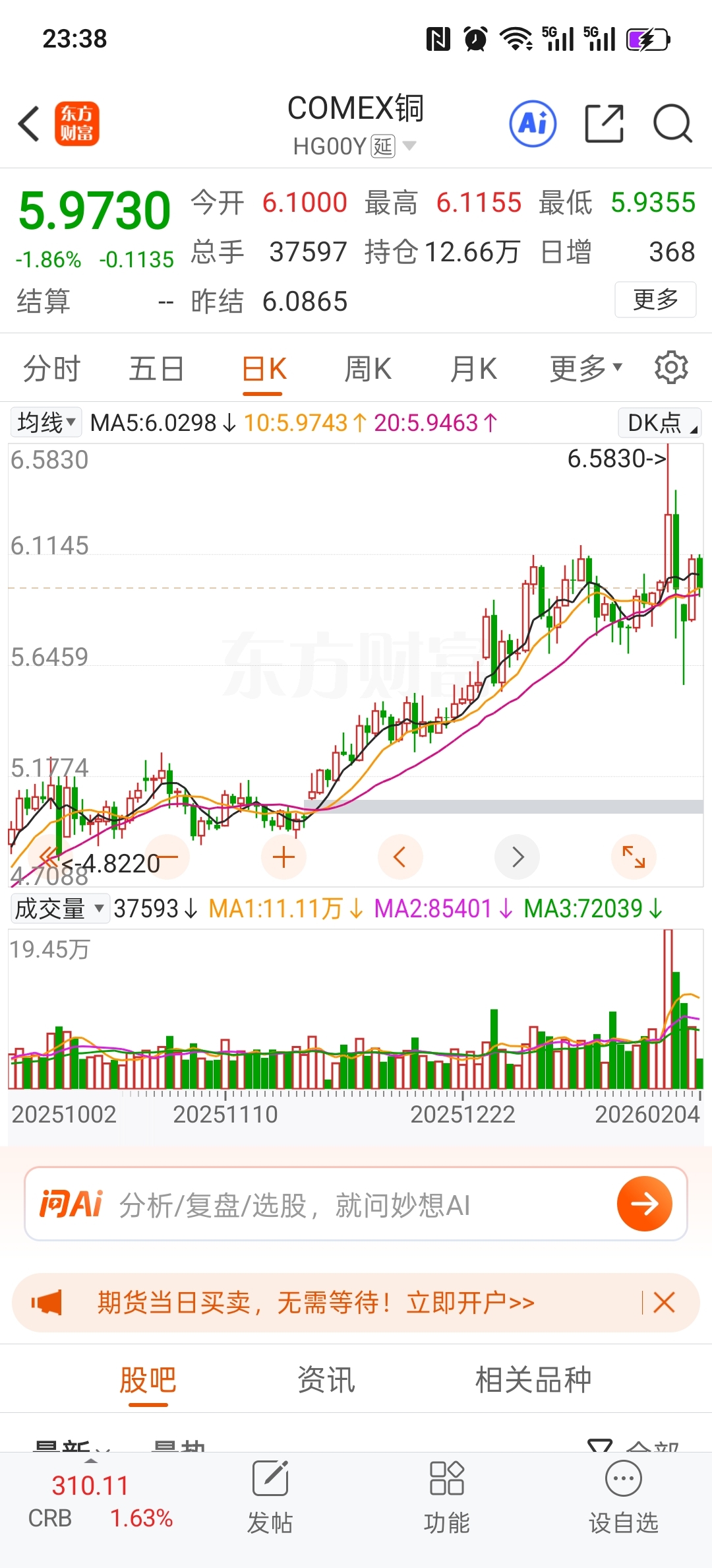 $铜陵有色(SZ000630)$ 还行吧,也没跌多少,昨天期货大阳线也没见它涨啊,不用过于恐慌