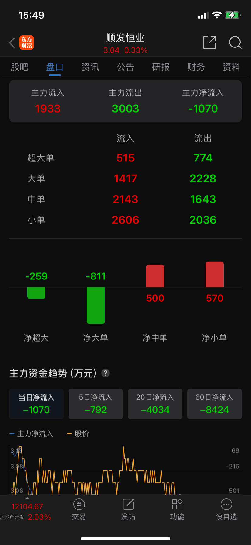 $顺发恒业(SZ000631)$ 为什么顺发恒业天天超大单,大单一直净流出,周五才成交了几千万元,主力又流出了1070万元,这只股票是地产板块,周五地产板块大涨,顺发恒业竟然又是板块垫底。