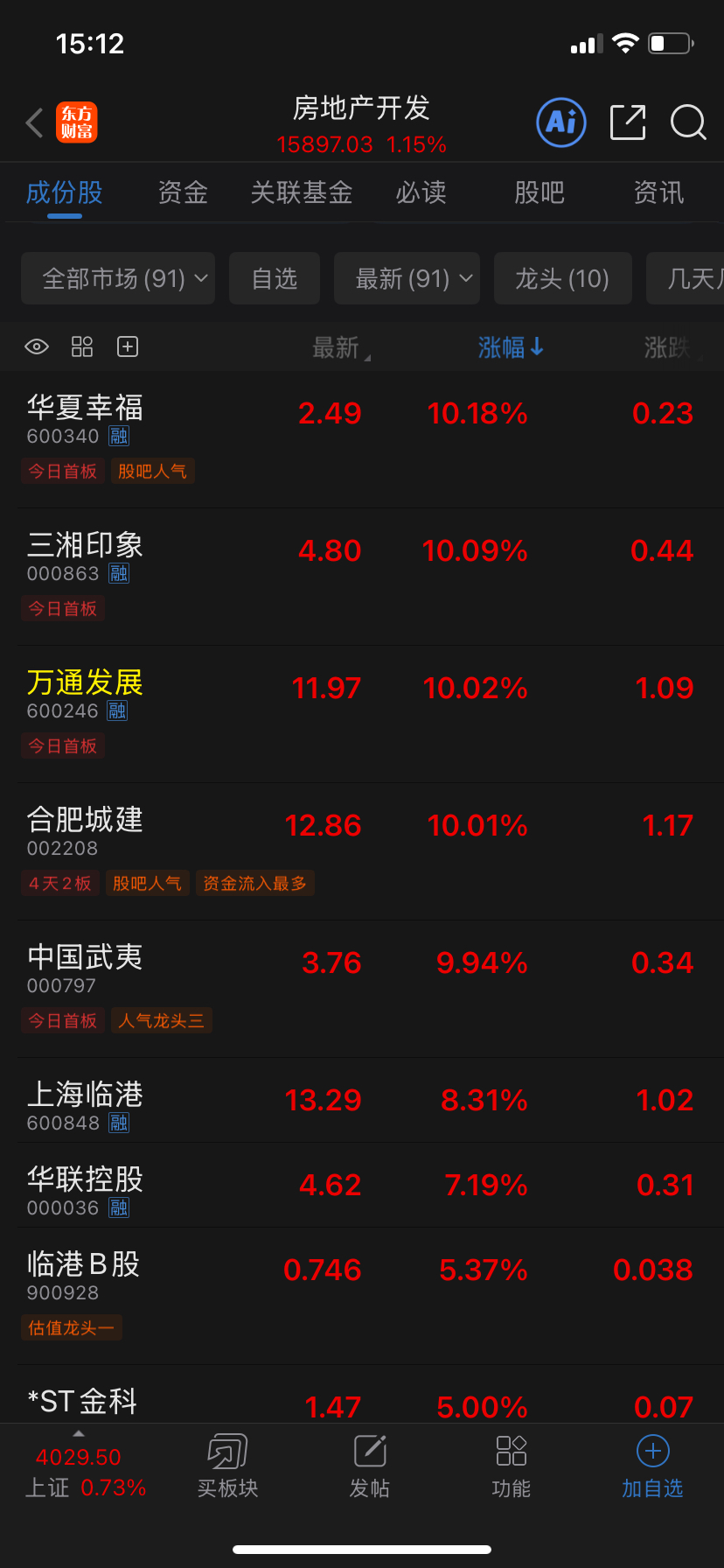 $顺发恒能(SZ000631)$ 几十只地产股再次大涨,收盘多只地产股涨停,顺发板块垫底,不过无所谓了,反正抛剩几万股了。