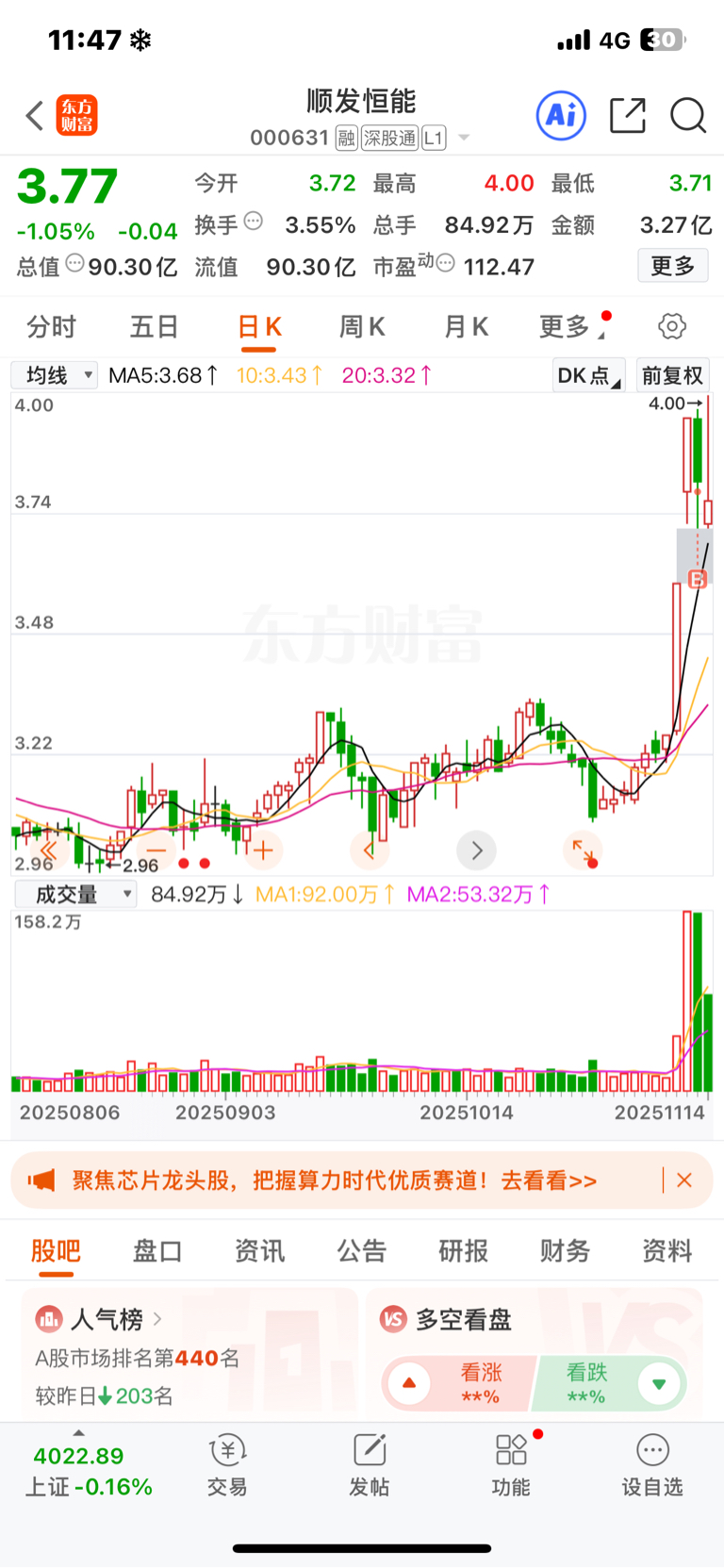 $顺发恒能(SZ000631)$ 昨天进来早上赚钱没有跑 收盘不管咋样都要跑 这个不让涨的