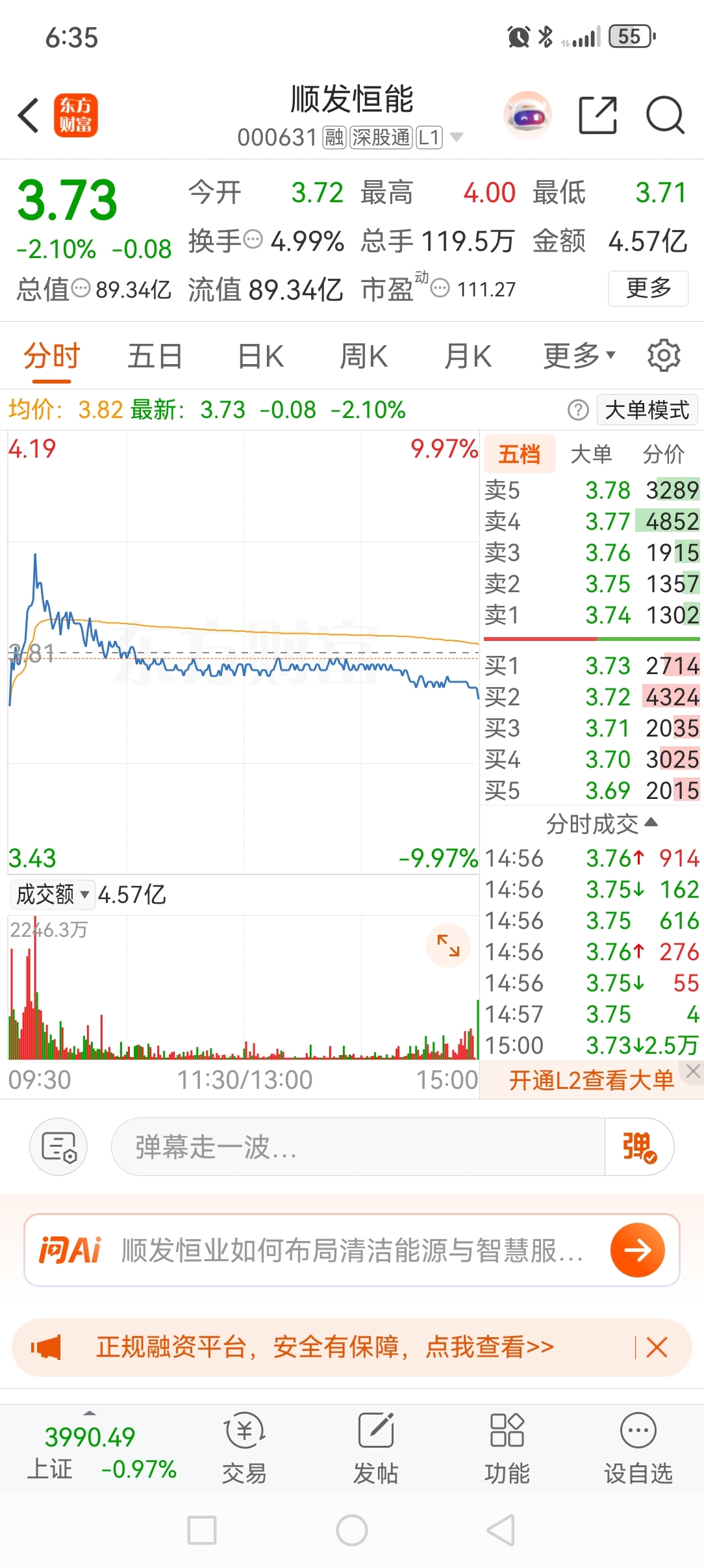 $顺发恒能(SZ000631)$ 看分时图,急涨缓跌就是出货。都知道