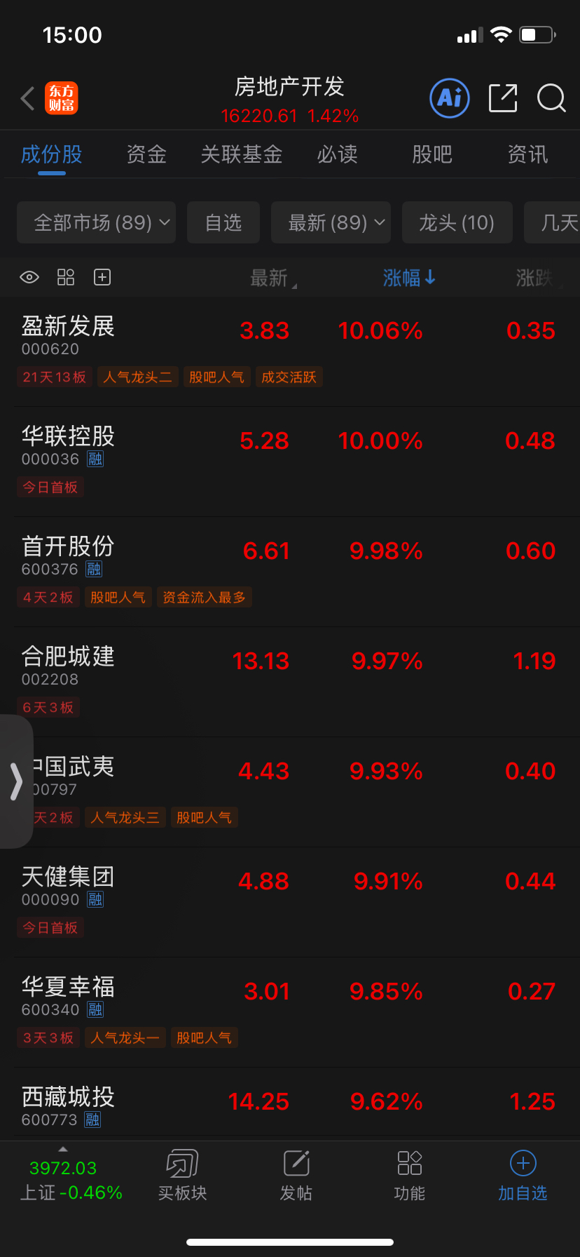 总共才几十只自选股,今天收盘又是大批涨停,顺发在中小盘地产股应该是今年涨停最少的